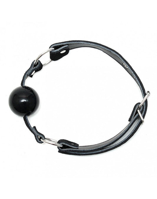 Gag / mondknevel van leer met siliconen bal - zwart