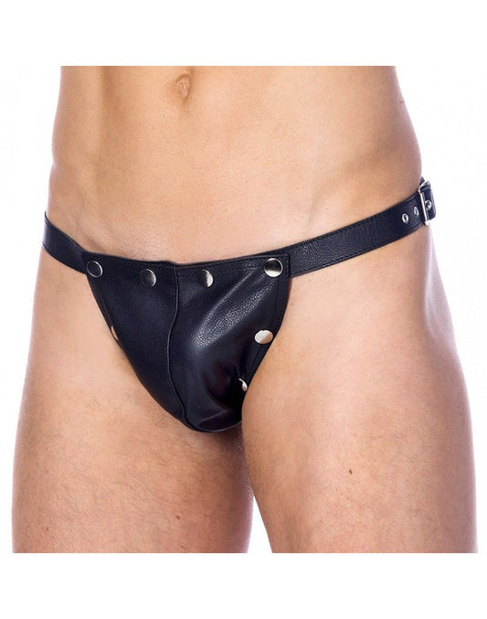Herren G-String aus echtem Nappaleder mit Penistasche - Schwarz