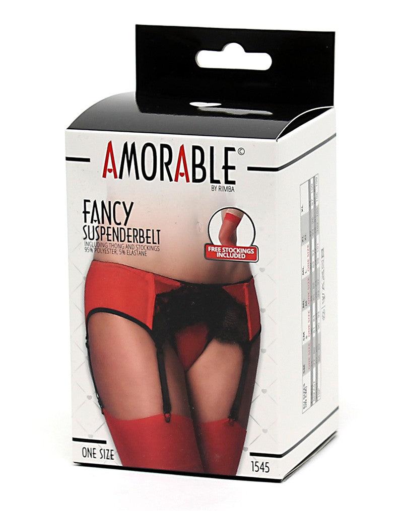 Amorable - Glatter Strapsgürtel mit Spitzendetail vorne - Schwarz/Rot