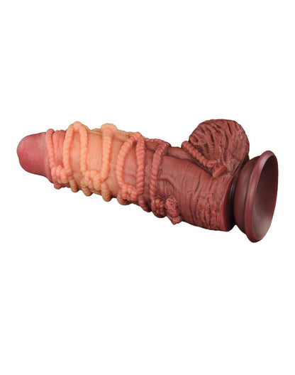 LoveToy - XXL Extrem Dildo mit Seil-Motiv - Länge 24 cm - Braun/Nude
