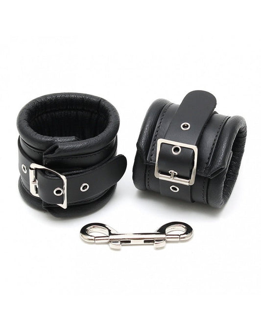 Leather footcuffs lined and adjustable - black
