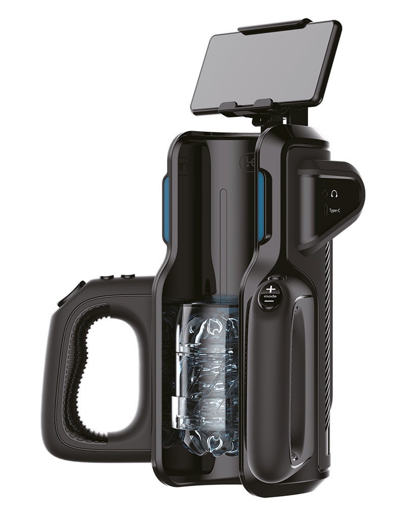 The SM 500 is a rechargeable super-powerful male masturbator with phone holder.