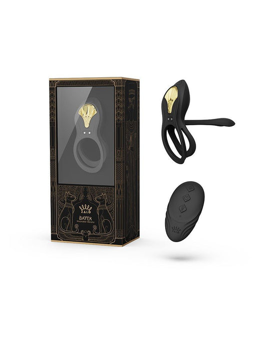 ZALO Anillo de pene vibrador y vibrador de acoplamiento BAYEK con mando a distancia - negro obsidiana