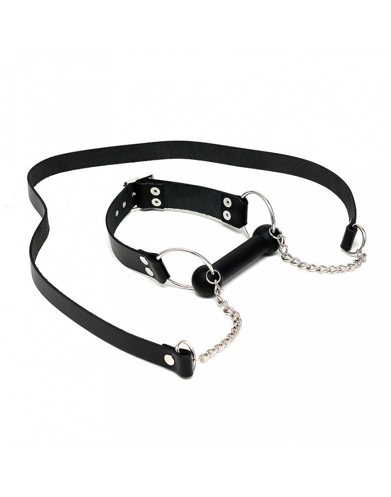 Mordisco con riendas para guiar a tu compañero en la dirección correcta. La correa de cuero ajustable asegura que la broca permanezca en su lugar.