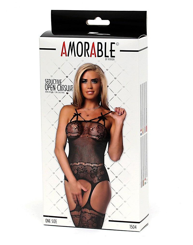 Amorable - Traje de baño de red con tirantes y medias con tirantes - Negro