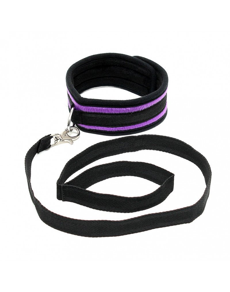 Collar Bondage suave con correa desmontable y cierre de velcro. Material:100% nailon Color:Morado - Negro