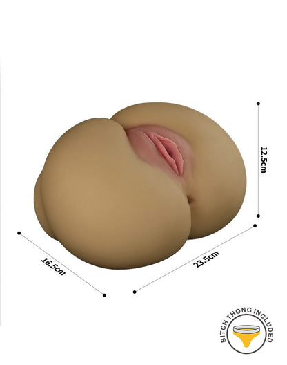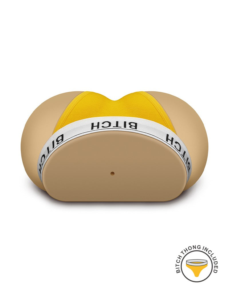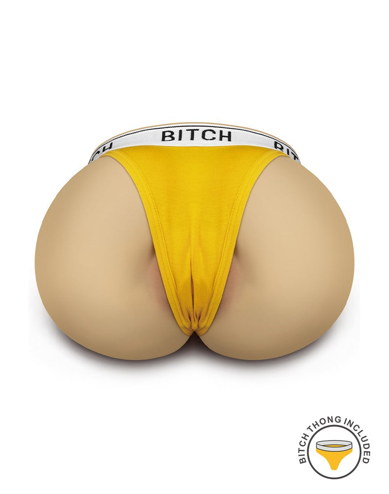 Este masturbador está fabricado con un material realista y agradable a la piel que imita el cuerpo femenino y proporciona una experiencia extremadamente realista. El túnel vaginal diseñado tiene el interior texturizado que se puede sentir claramente al insertar el pene. Incluye un tanga amarillo "perra". El tanga también se puede quitar del masturbador.
