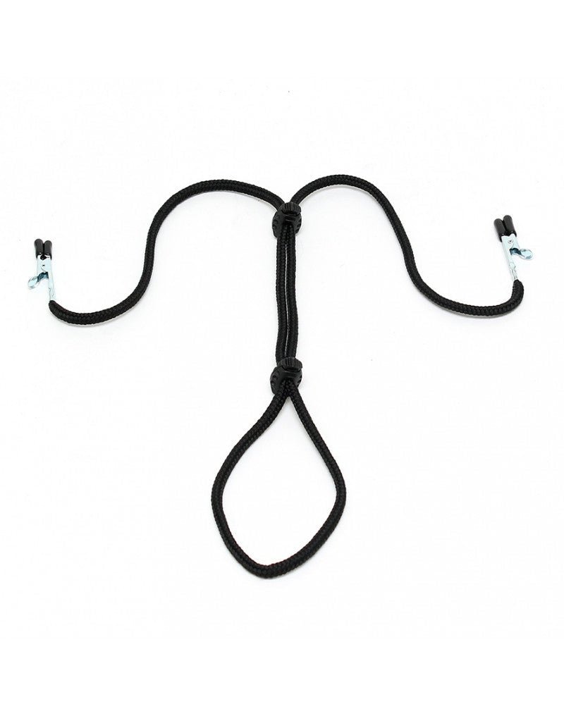 Pinzas para pezones con cordón para pene/testículo Material:Nylon Tamaño:Ajustable Color:Negro