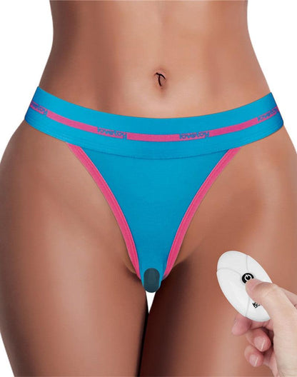 La culotte est livrée avec un vibromasseur à ogive télécommandé et rechargeable qui délivre une puissante stimulation. Une poche discrète dans l'entrejambe de la culotte maintient en toute sécurité l'œuf multifonctionnel et assure à la fois confort et stimulation secrète.