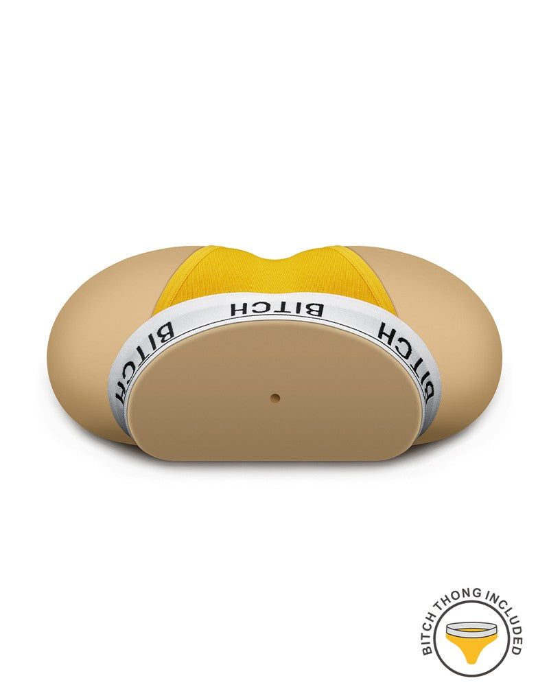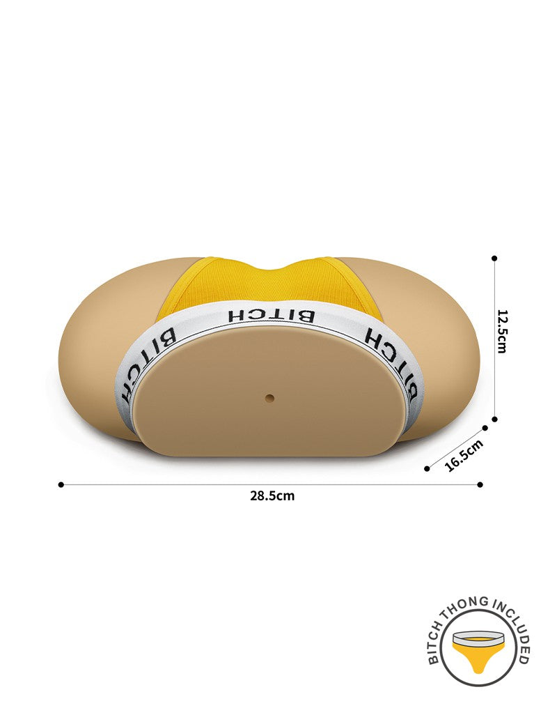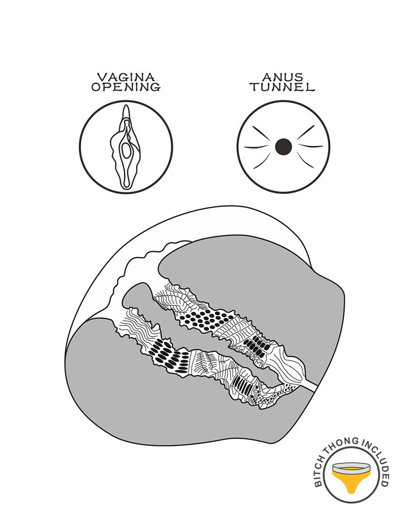 Ce masturbateur est fait d'un matériau réaliste et doux pour la peau qui imite le corps féminin et offre une expérience extrêmement réaliste. Le tunnel vaginal conçu a un intérieur texturé qui se fait clairement sentir lors de l'insertion du pénis. Inclus est un string"salope"jaune. Le string peut également être retiré du masturbateur.