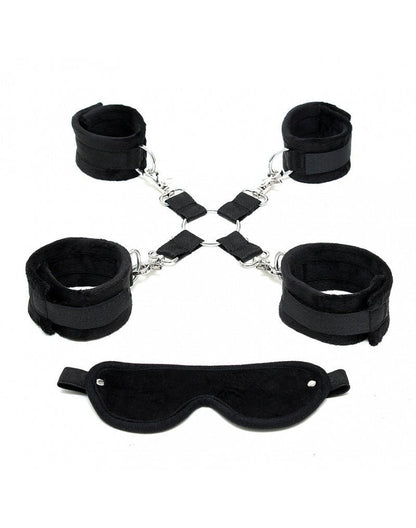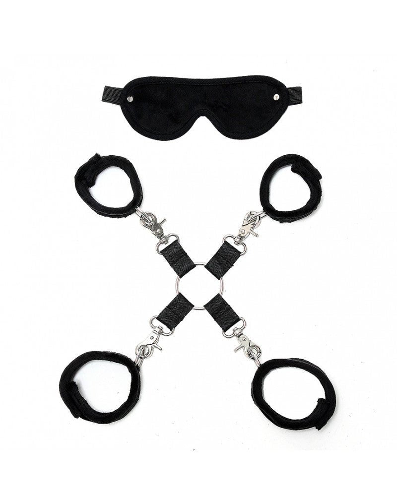 Avec le bandeau, votre partenaire ne saura pas ce qui l'a frappé! Avec même deux jeux de poignets Velcro et un Hogtie épicé, vous pouvez attacher les menottes aux chevilles et aux poignets ou n'importe où ailleurs! Faites se tortiller votre partenaire de plaisir!