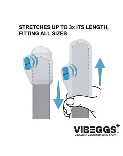 Le matériau ultra-doux est agréable au toucher et s'étire de manière élastique jusqu'à trois fois sa longueur, s'adaptant parfaitement à toutes les tailles. Les VIBEGGS n'ont pas besoin de lubrifiant ; 4 à 8 gouttes d'eau ou une touche de salive suffisent pour les préparer à une expérience délicieuse et fluide.