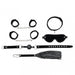 Let's Play Soft bondage set: Blinddoek + Mondknevel + Handboeien + Voetboeien + Halsband + Zweep. Deze set is verkrijgbaar in Roze/Zwart (7023) Materiaal: Nylon Maat: Verstelbaar met klittenband Kleur: Zwart