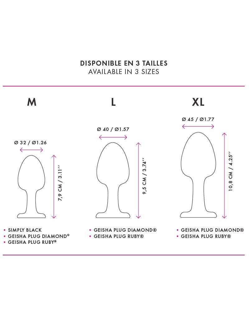 De Geisha Plug is een Buttplug met de beroemde Geisha Ball Technologie. Een losse metalen Kogel zorgt voor ongekende sensaties. Met een robijnen kristal om te schitteren en te versieren.