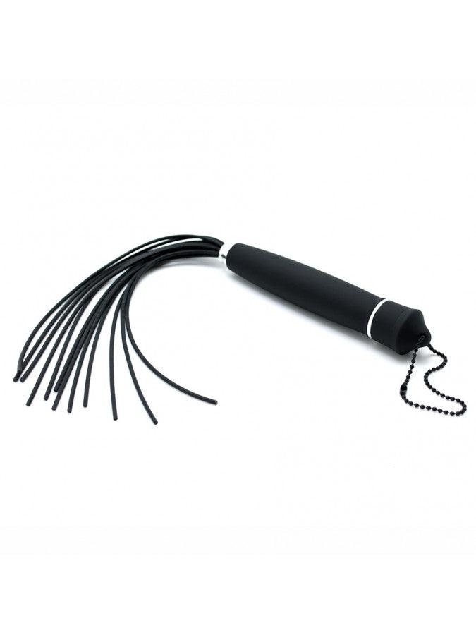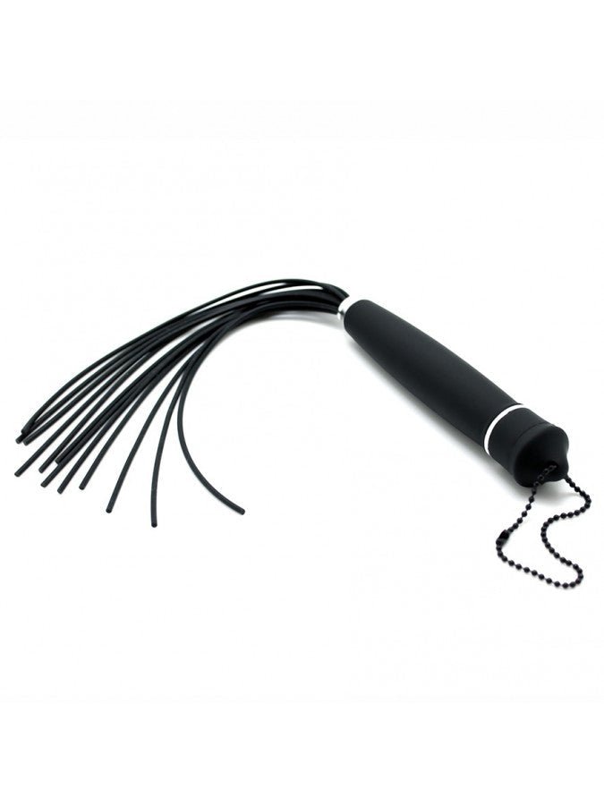 Kleine plaagzweep met siliconen strengen. Lengte 30 cm. Fijn op mee op te warmen maar kan ook bijten.
