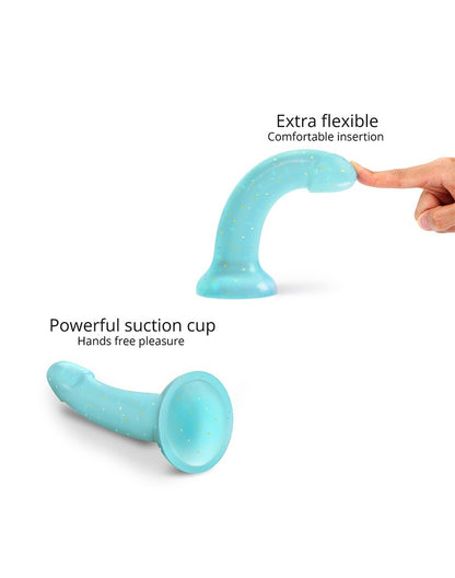 Love to Love - Dildo - Dildoll Nightfall - Buigbaar - Siliconen - Blauw Met Gouden Glitterende Sterren