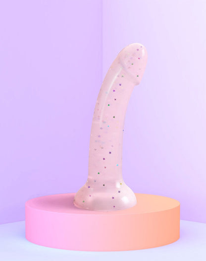 Love to Love - Dildo - Dildoll Starlight - Buigbaar - Siliconen - Met Gouden Glitterende Sterren - Roze