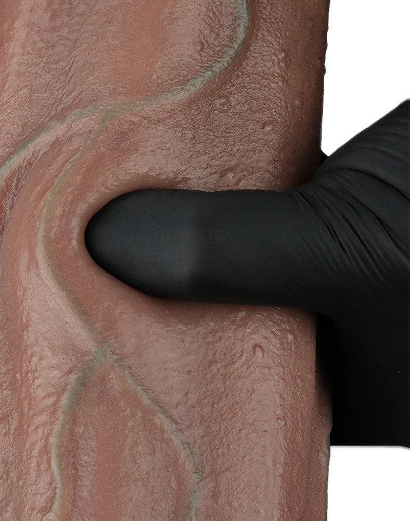 LoveToy - Dubbellaags Siliconen Dildo XXL - Lengte 33 cm - Diameter 5,5 cm - Bruin