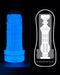 Maak de donkerste fantasieën mogelijk met deze glow in the dark masturbator! De masturbator is doordrenkt met niet-giftig gloeipoeder, dat in het donker een kleurrijk, zichtbaar blauw licht afgeeft. Het rekbare materiaal glijdt gemakkelijk op en neer langs de schacht en masseert de penis met innerlijke texturen.