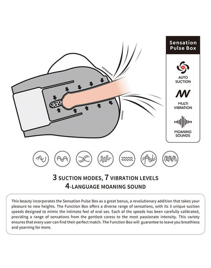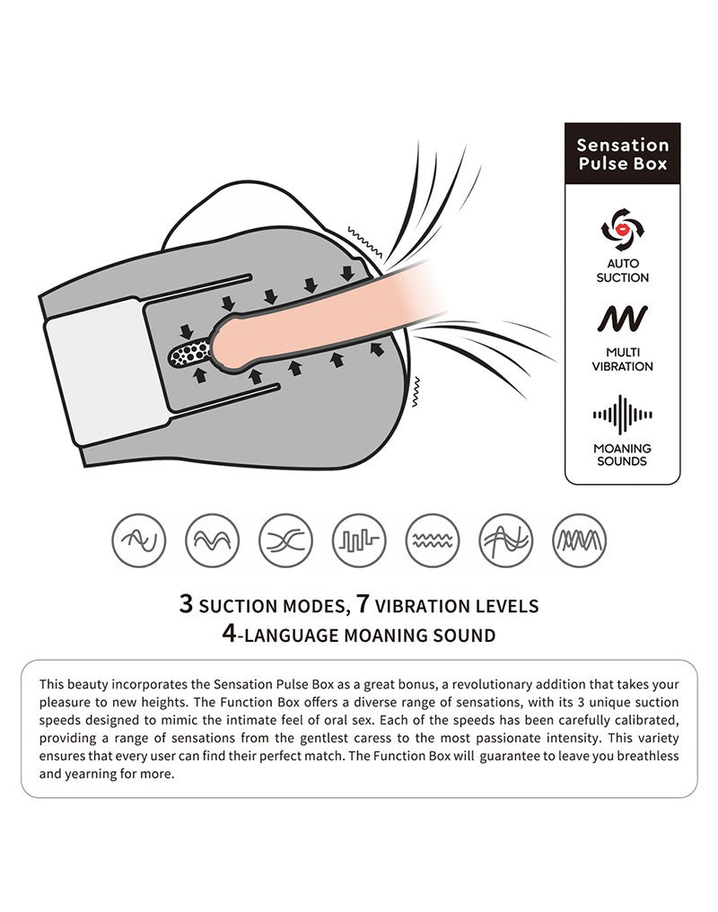De Streetgirls Masturbator met de revolutionaire Sensation Pulse Box is gemaakt van realistisch, huidvriendelijk materiaal dat de vrouwelijke vormen nabootst en een levensechte ervaring biedt. De Pulse Box beschikt over 3 unieke zuigsnelheden, waarbij elke stand zorgvuldig is afgesteld om een scala aan sensaties te bieden, van een zachte streling tot intense passie. Met de toevoeging van realistische kreungeluiden en 7 vibratiefrequenties gaat deze Sensation Pulse Box nog een stap verder om een werkelijk onvergetelijke ervaring te creëren, die bij elke aanraking onweerstaanbaar genot oproept.
