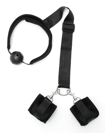 Een bondagesetje die je speelpartner op verschillende manier beperkt. De gag zorgt voor een heerlijk gevoel van onmacht omdat hij/zij niets kan zeggen en niet kan klagen. De boeien/bondageset zorgt voor nog meer onmacht.