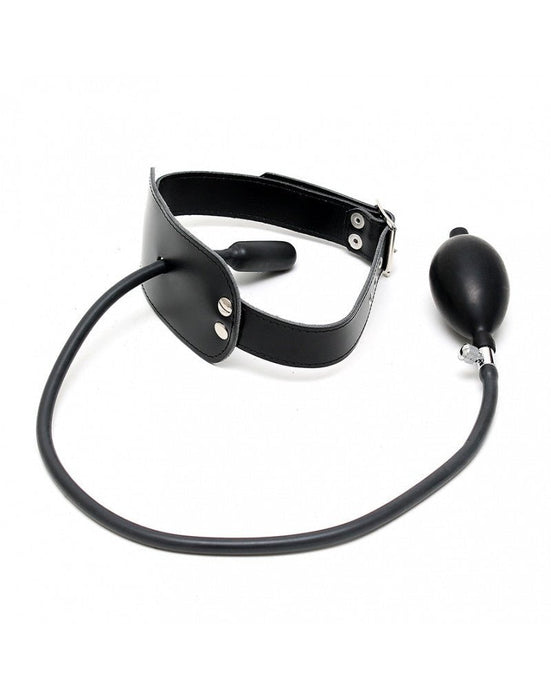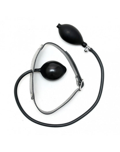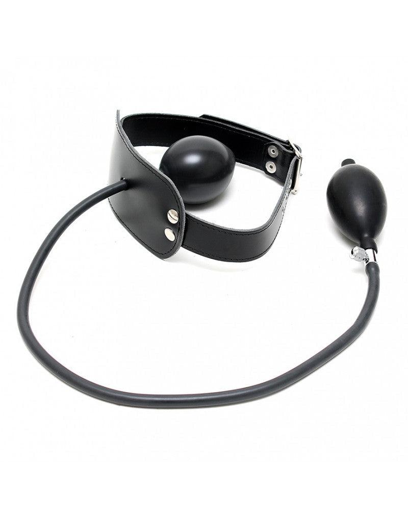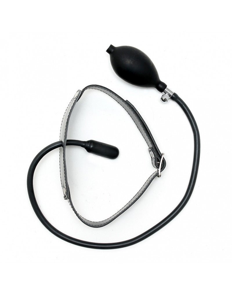 Mondknevel met opblaas ballon en pomp voor mooie bolle wangetjes. De verstelbare lederen band zorgt ervoor dat de gag goed op z'n plaats blijft zitten. Met lederen riem verstelbaar met gesp