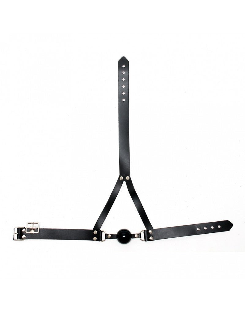 Lederen mondknevel met Siliconen bal van 44 mm. doorsnede. Deze mondknevel is te sluiten met een gesp aan de achterzijde over 8 posities. De lederen band is 3 cm breed.