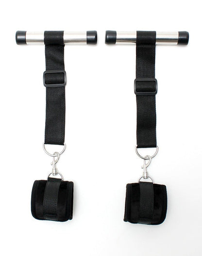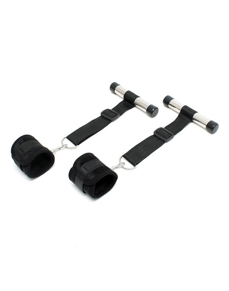Deze handige boeienset haak je over elke deur heen om je partner / beminde / slavin vast te zetten. Handig in gebruik en reuze effectief. Comfortabel om ook gedurende langere tijd aan vast te staan.