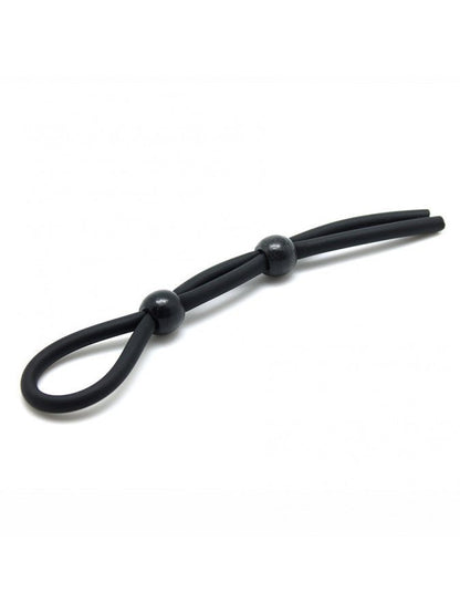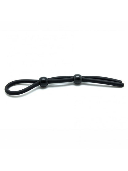 Koord van siliconen. Verstelbaar door de twee klemkralen.