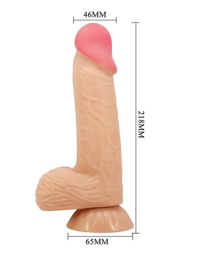 Perfect voor vaginale of anale penetratie, heeft deze verleidelijke dildo 21.8 cm aan lengte en buigzame ballen aan de basis voor extra realisme. De brede zuigvoet maakt deze penisvormige dildo perfect voor wat hands-free wall-banging plezier!