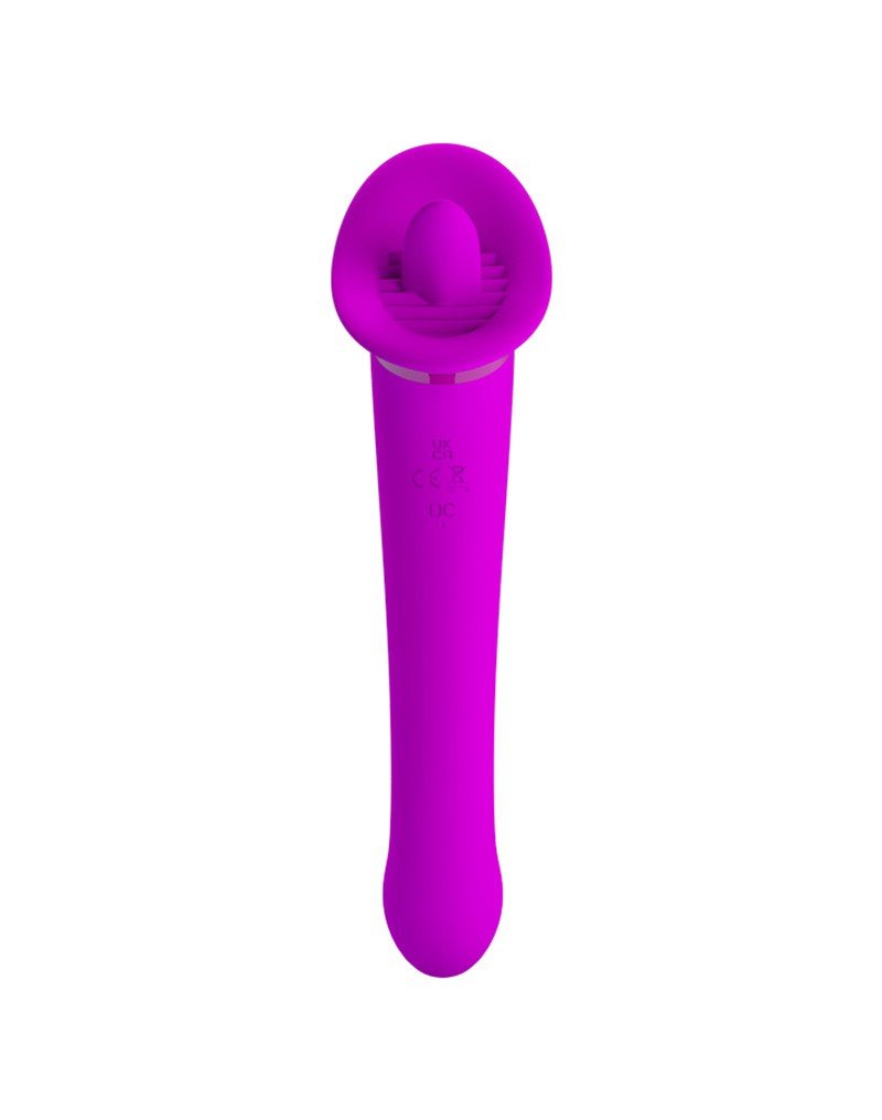 Deze vibrator en stimulator voor orale seks biedt de gebruiker 12 vibratiestanden en 12 likstanden om de clitoris te stimuleren.