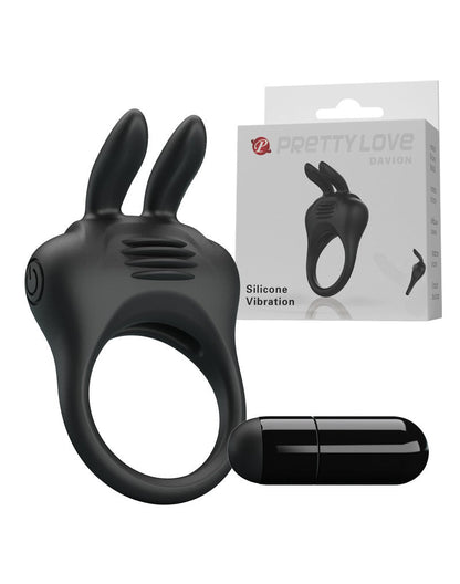 Pretty Love Vibrende Cockring DAVION met clitoris stimulator - zwart