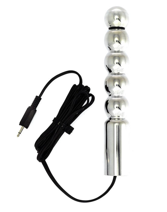 Rimba Electro Play bi-polaire dildo die zowel anaal als vaginaal te gebruken is. Zo lang beide metalen delen welke gescheiden zijn door de zwarte ring, de huid of het mnselijk lichaam raken, kan er een stroomschok gerealiseerd worden.