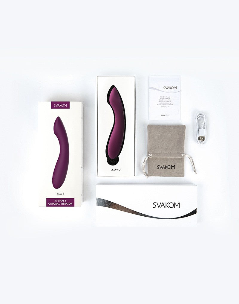 SVAKOM introduceert Amy 2: een luxe product dat buigt naar jouw wil. Amy 2 biedt een flexibele reis naar bevrediging met zijn ultrazachte siliconen en eenvoudige ontwerp. De platte, ovale kop van de flexibele vibrator zorgt voor een gerichte stimulatie van de g-spot. Amy 2 is uitgerust met 5 verschillende vibratiestanden, elk met 5 intensiteitsniveaus.